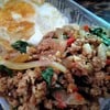 ร้านครัวไทยฝรั่ง ไม่รู้เหมือนกันว่าคืออย่างไร แต่ลองสั่งมาดูหน่อย พอดีเด็กๆ อยากทานผัดกระเพรา ก็จัดมาให้กันซะ 3 กล่อง กระเพราหมูสับเผ็ดน้อย+ไข่ดาวสุกกล่องละ 60 บาท ปริมาณให้มาเยอะเกินกำลังเด็กทานหมด ถือว่าคุ้มในราคา รสชาติกระเพราไม่เผ็ดก็คล้ายๆหมูสับผัดธรรมดา แต่มีกลิ่น มีรสเครื่องปรุงให้ได้ชื่นใจดูเพิ่มเติม