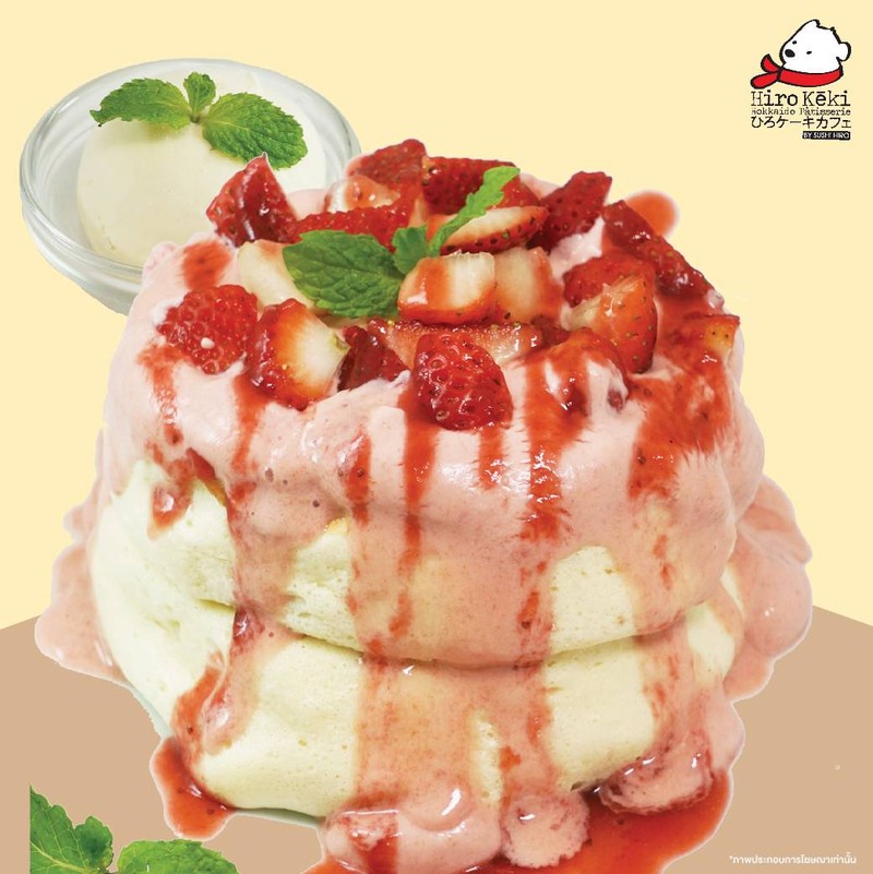 เวรี่ สตรอเบอร์รี่ ฟลัฟฟี่แพนเค้กเด้งดึ๋งๆ สไตล์ฮอกไกโด เสิร์ฟพร้อมไอศครีมฮอกไกโดมิลค์