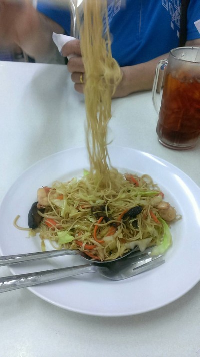 มาวัดเล่งเน่ยยี่ เรากับป้าก็มาหาร้านอาหารกินกัน หาร้านขายเห็ดหูหนู แล้วก็เดินมาร้านนี้เห็นแต่คนมีอายุทำกับข้าว เลยอยากลองชิม เมนูมีประมาณนึ่ง ขนาดเมนูข้าวมีแค่กระเพราะไข่ดาว เราสั่งผัดหมี่ฮ่องกง ราคา 50 บาท กับข้าวต้มปลาสด60บาท ข้าวผัดปูสั่งกลับ น้ำหล่อฮั้งก๊วย 15บาท ชาดำเย็ย 15฿ ลองไปอุดหนุนดูดูเพิ่มเติม