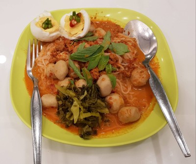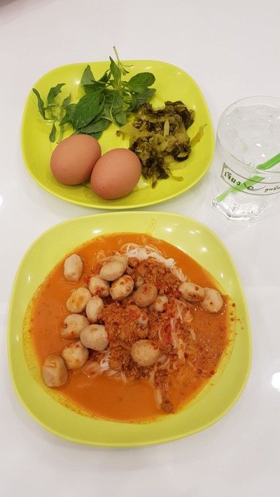 ร้านอยู่ mega bangna มีขนมจีนและน้ำยาหลายชนิดให้เลือกทาน รสชาติน้ำยาเข้มข้นเนื้อไก่ และลูกชิ้นแน่นมาก ผักและเครื่องเคียงพร้อม ปริมาณและรสชาติเทียบกับราคาแล้วถือว่าคุ้ม แต่วันที่เราไปผิดหวังเรื่องน้ำดื่มเพราะสั่งอะไรไปก็หมด และพนักงานค่อนข้างเสิร์ฟช้า หรืออาจจะด้วยคนมาทานเยอะดูเพิ่มเติม