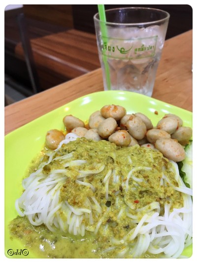 ความเห็นส่วนตัว การบริการดีคะ พนง รายการอาหาร น้ำยาต่างๆๆ วันนี้ มาทาน 3 น้ำยา เปลี่ยน น้ำยาเงี้ยว กับ เขียวหวาน ความเห็นส่วนตัว เส้นขนมจีนไม่ผ่านรุงรัง น้ำยาเขียวหวาน เข้มข้น แต่แกงเขียวหวานไก่รสชาติไม่ค่อยอร่อยคะ ไก่เป็นโครงใหญ่มาก ขาไก่ ส่วนต่างๆ และ น้ำยาเงี้ยวหมูสับเยอะ ดี ส่วนขนมจีนซาวน้ำ ไม่อร่อยคะ ไอศกรีมกะทิสด เย็นๆ รสชาติกำลังดี ให้ 1 ดาว ดาวแรก ราคา ไม่แพง มากดูเพิ่มเติม
