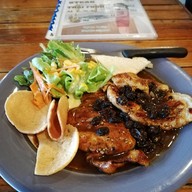 33% ของรีวิวบอกว่าร้านนี้เหมาะกับ ครอบครัวหรือเด็กอกไก่ซอสลูกเกดพริกไทยดำ เสิร์พพร้อมสลัดผัก ข้าวเกรียบปลา ขนมปัง รสหวานลูกเกด มันหนังไก่อกไก่ซอสลูกเกดพริกไทยดำเค็มและเผ็ดจากซอสพริกไทยดำผสมกันลงตัว อกไก่ติดหนังหมักนุ่มย่างได้ที่ ราคา 109 บาท ร้านอยู่ถนนเทศบาลบางบัวทองใกล้วัดละหารดูเพิ่มเติม
