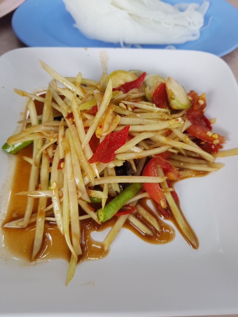 เป็นร้านส้มตำที่ขากลับบ้านแม่บอกเบื้ออยากกินส้มตำก่อนกลับ เราทำหน้าที่เสริชฟาเจอดาวร้านนี้พร้อมรีวิวค่อนข้างดีเลยบอกแม่จะลองไม๊ทุกคนเห็นพ้องตามปักหมุดไปวกวนลุกลีบพอสมควรพอถึงร้าน อุ๊ย รถจอดเรียบถนนเพียบบอกทุกคนในรถว่า สงสัยจะมาไม้ผิดร้านต้องมีดีแล้วมั้งรถเยอะขนาดนี้ เข้าร้านไปร้านค่อนข้างธรรมดานะ พื้นยังเป็นก้อนกรวดยังไม่เทพื้นปูนเลยเวลาเดินมีเสียงและมีฝุ่นและร้านหลังคาต่ำอาการค่อนข้างร้อนอบอ้า...อ่านต่อ