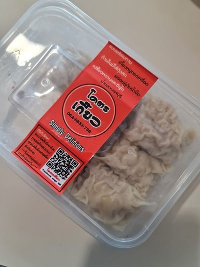 เกี๊ยวร้านนี้อร่อยดีค่ะ เป็นเกี๊ยวไส้หมูสับ ตรงกลางใส่กุ้ง 1 ตัว เกี๊ยวตัวใหญ่ ไส้เยอะ ไส้แน่น 1 กล่องมี 9 ตัว ราคา 120 บาท ถือว่าไม่แพงนะคะ เพราะเกี๊ยวเค้าตัวใหญ่มากจริงๆ เกี๊ยวปรุงรสชาติได้ดี เนื้อสัมผัสก็เด้งๆ หนึบๆ ดี กุ้งสดกรอบ น้ำจิ้มมีให้ 2 แบบ คือ ซอสเปรี้ยว และน้ำจิ้มซีฟู้ด แล้วก็มีกระเทียมเจียวให้ด้วยค่ะ เราชอบน้ำจิ้มซีฟู้ดร้านนี้นะคะ เนื้อสัมผัสเนียนดี ปั่นมาแบบละเอียดๆ เลย รสชาติก...อ่านต่อ