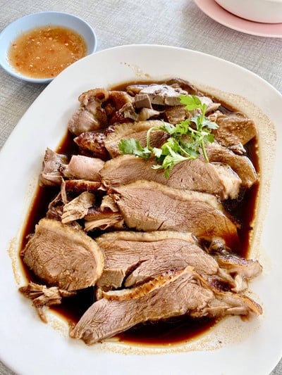 ร้านห่านพะโล้ที่ย้ายร้านมาจากแถวถ.ติวานนท์ ร้านใหม่ดูสะอาด โล่งๆ โปร่งๆ น่านั่งกว่าร้านเก่า แถมมีลานจอดรถกว้างขวางบริการด้านหลังร้าน สะดวกกับลูกค้าในการแวะมา เมนูขึ้นชื่อของร้านคือ ห่านพะโล้และขาหมู ถ้าไม่ทานห่าน ก็มีเป็ดพะโล้ขายด้วย จะสั่งเป็นข้าวราดหรือสั่งมาเป็นกับข้าว ได้หมด ส่วนเมนูอื่นๆ พวกกับข้าวและแกงจืดต่างๆ แบบที่ทำไว้แล้ว สามารถไปส่องดูในหม้อได้ หรือถ้าไม่แน่ใจรสชาติว่าจะถูกใจหรือไม...อ่านต่อ