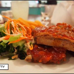 อาหารสไตล์ฝรั่ง ข้างในตบแต่งสวยงามมากครับดูหรูหราอลังกามาก สั่งซุปกุ้งข้น มากับขนมปังร้อนๆ รสชาติเข้มข้นใช้ได้ แต่ขนมปังไม่อร่อย และตาใด้วยเนื้อหมูสันนอกอันนี้โอเค ชิ้นใหญ่น่าทานมาก น้ำเกรวี่ทำได้อร่ยมากครับดูเพิ่มเติม
