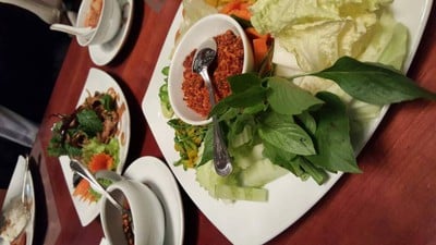 แกงไก่ต้มข่า ชวนแกงส้มมา ร่าเริงใจ ลาบหมูหัวร่อใหญ่ ก็ชวนไก่ สมุนไพรมา ผัดพริกปลา ชอบเฮฮา มาเป็นเพื่อน ถึงเรือนชาน ขนมหวาน สำราญรื่น ต้องสดชื่น ไม่ตื่นสาย อ๋อ แน่นอน ผลไม้ มากรีดกราย ร่วมสังสรร มาพร้อมกัน มื้อกลางวัน ช่างอิ่มเอมดูเพิ่มเติม