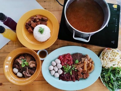 สั่งเกาเหลาเนื้อตุ๋นพิเศษ 110 บาท มีเนื้อสด เนื้อตุ๋น ลูกชิ้นเนื้อและเครื่องในเนื้อ เนื้อนุ่ม ไม่คาว ชามใหญ่ถึงใจ น้ำซุปรสกลมกล่อมไม่เค็มเกินไป หอมมาก บางร้านเค็มจนกินไม่ได้ มีตั้งแต่ราคา 70 บาทและ 80 บาท อีกชามสั่งเส้นหมี่หมูสดและหมูตุ๋น ก็อร่อยมากๆ เนื้อนุ่ม น้ำซุปหอมหอม รสชาติดี เส้นลวกดี เหมาะกับคนที่ไม่กินเนื้อวัวก็มากินได้ดูเพิ่มเติม