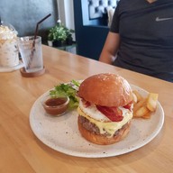 ร้านอาจไม่สะดุดตาเท่าไหร่เพราะขับรถผ่านหลายรอบแต่ไม่เคยสังเกตุเห็นเลย พอเข้ามาในร้าน ดูดีมาก เหมือนไม่ใช่แถวพัฒนานิคม ทั้งเมนูอาหาร เครื่องดื่ม ดูดีหมด ด้วยชอบกินเนื้อ เลยสั่งเบอร์เกอร์เนื้อแองกัส ตัวเบอร์เกอร์ชิ้นหนามาก ใครชอบเนื้อได้กินสะใสกัดเต็มๆคำ เดี๋ยวไว้โอกาสหน้ามาลองเมนูอื่นอีกดูเพิ่มเติม