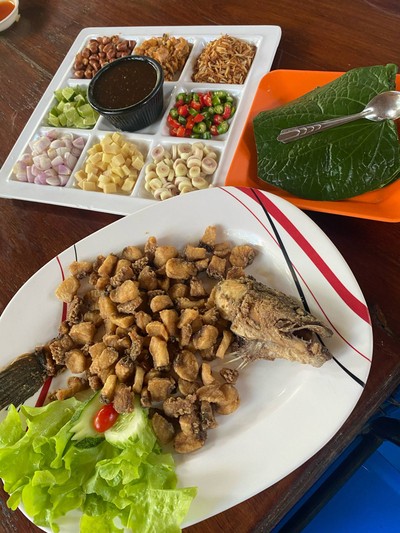 บรรยากาศสบายๆ นั่งฟังเสียงน้ำตกเพลินๆ ระหว่างรออาหาร คือช่วงที่คนเยอะๆ นี่รอนะคะ😅 ดีว่าวิวงามอยู่ อาหารอร่อยเหมาะสมกับวิว ราคาถือว่าไม่แพงจร้า ยกให้หม้อต้มยำปลาคังเป็นที่หนึ่งในวันนี้ กลมกล่อม อร่อยมาก ไม่จี๊ดเกิน รู้สึกถึงความพอดี ไก่ทอดเกลือร้านอื่นมักใช้แค่ส่วนปีก ร้านนี้ใช้ส่วนข้อสะโพก เคี้ยวเพลิน😋ดูเพิ่มเติม