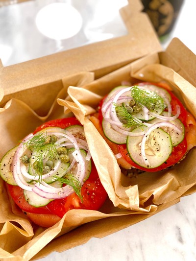 Smoked salmon, seasonal tomato, cucumber, cream cheese, red onion, dill, caper