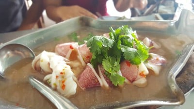 ร้านอาหารเก่าแก่ ตั้งอยู่บนเขาสามมุข เยื้องๆกับศาลเจ้าแม่สามมุข ที่สามารถแวะไปไหว้ขอพรกันได้ก่อนหรือหลังทานเสร็จ ร้านใหญ่กว้างขวาง คนเยอะเลยในวันหยุด มีพนักงานคอยบริการอย่างใกล้ชิด ในวันนี้สั่งอาหารมา 3อย่าง สั่งมาเป็นเมนู หอยนางรมสด ปลาหมึกนึ่งมะนาว และ ปลาอินทรีทอดราดน้ำปลา หอยนางรม ตัวเล็ก สดมาก ประทับใจเลย ปลาหมึกนึ่งมะนาว เป็นหมึกไข่ เนื้ออร่อย ไข่แน่น และ เปรี้ยวกำลังดี ทานน้ำกับข้าวได...อ่านต่อ