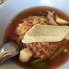 เมนูเด็ดที่นัทอยากจะแนะนำ คือ ^เส้นปลาเกี๊ยวปลาเย็นตาโฟต้มยำ^ ในชามประกอบไปด้วย เส้นปลาทำจากเนื้อปลาเกือบ100% เกี๊ยวปลา ลูกชิ้นปลา หมึกกรอบ แมงกะพรุน เลือด ผักบุ้งไทย แทบไม่ต้องปรุงเครื่องเพิ่มเลย เปรี้ยวหวานกำลังดี เติมเผ็ดเพิ่มอีกนิดหน่อย สำหรับคนที่ชอบกินเผ็ด เมนูนี้ สนนราคา 70 บาทดูเพิ่มเติม