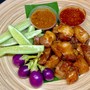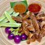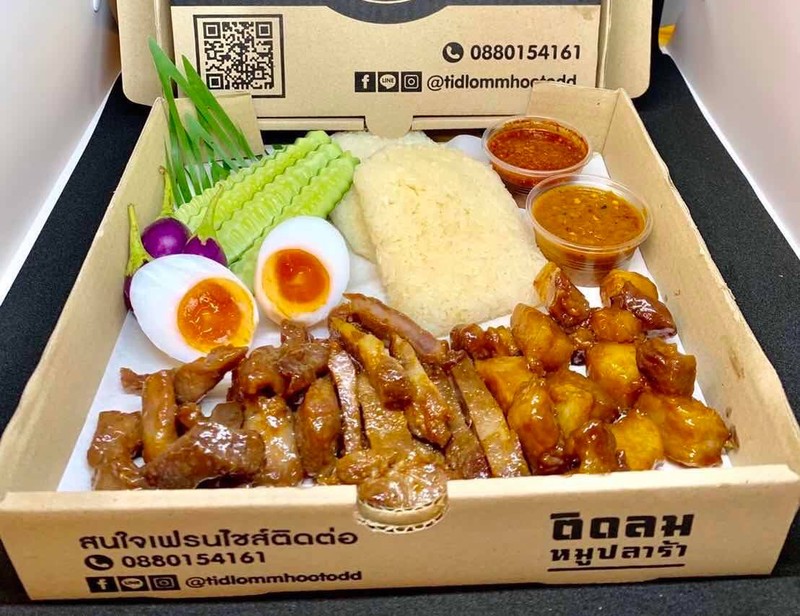 ประกอบด้วย หมูสันคอทอด / หมูสันคอย่าง / สามชั้นทอด อย่างละ 1 ชุดและน้ำจิ้มประกอบด้วยน้ำจิ้มแจ่วปลาร้า / แจ่วโบราณ อย่างละ 1 กระปุก / ไข่ต้ม 1 ฟอง / ข้าวเหนียว 2 ห่อ