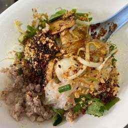อีกเมนูจานด่วนง่ายๆย่านลาซาล เป็นตึกแถวห้องเดียว แตกตัวสาขามาจากสุขุมวิท 49 เส้นเล็กแห้ง ใส่ห่อมาเส้นออกจะติดกันไปหน่อย จะยีเส้นค่อนข้างยากหน่อย ส่วนหมูต่างๆ ยังคงรสชาติมาตรฐาน วุ้นเส้นน้ำ จานนี้เส้นไม่ติดวุ้นเส้นหยุ่นๆกำลังดี ปรุงเพิ่มอีกนิดตามความชอบดูเพิ่มเติม