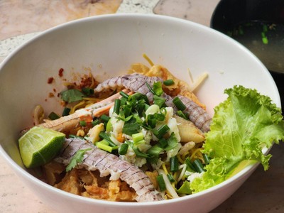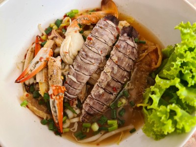 ครั้งแรกกับการกินก๋วยเตี๋ยวกั้ง ก็จัดชามใหญ่เลย กั้งตัวใหญ่ดี และเครื่องอื่นๆก็เยอะเช่นกัน ชามละ200฿ ผมว่าโอเคครับคุ้มค่าเมื่อเทียบกับวัตถุดิบที่มาทำ รสชาติดีอีกด้วย โดยเฉพาะน้ำต้มยำ กิบแบบหมดชามเลย บรรยากาศในร้านโปร่งดี ที่นั่งเยอะ แต่ก็มีคนมากินเยอะเช่นกัน ถ้ามาช่วงกลางวัน อาจจะต้องรอแต่ไม่นานครับ เพราะเดี๋ยวก็ลุกกันแล้ว มาจันทบุรีทั้งที ก็ต้องลองกันหน่อยครับดูเพิ่มเติม