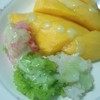 ข้าวเหนียวสามสีนุ่มๆ หอมมัน มะม่วงลูกใหญ่เนื้อหนารสหวานอร่อย