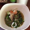 ร้านนี้เป็นร้านก๋วยเตี๋ยวที่ใครๆก็คุ้นชื่อ แทบจะมีทุกจังหวัดในประเทศไทย ก๋วยเตี๋ยวร้านนี้อยู่ติดถนนใหญ่เลยครับ หากมาจากทางอำเภอวัฒนานคร ร้านจะอยู่ซ้ายมือ ก่อนถึงบิ๊กซี เลยคอฟฟี่ฮิลล์มาหน่อยๆ ร้านเป็นแบบโอเพ่นแอร์ อากาศไม่ร้อน มีขายพวกก๋วยเตี๋ยว และข้าวขาหมูครับ ก๋วยเตี๋ยวจริงๆเน้นรสชาติจัด แต่ผมสั่งแบบเผ็ดน้อยไปครับ - บะหมี่เกี๊ยวกระดูกอ่อนต้มยำ (50.-) บะหมี่ค่อนข้างธรรดา ตัวเกี๊ยวหมูก็ธร...อ่านต่อ