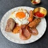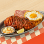 ข้าวผัดอเมริกันเลือกความเข้มข้นได้ กับไก่กงฟี ตุ๋นความร้อน 6 ชั่วโมง นำไปย่างและทอด เนื้อนุ่มละมุน ซอสซูพรีม ครีมเข้มข้นนนน แฮม เบคอน ไส้กรอกชีสอิตาเลียน และไข่ดาว *มีส่วนผสมของถั่วเหลือง American fried rice with confit chicken, supreme sauce, smoked ham, smoked bacon, Italian cheese sausage, and fried egg *Contain Soy beans