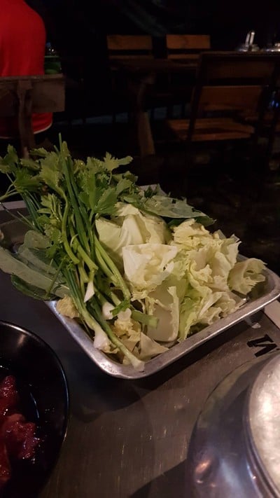 ผ่านบ่อยแต่พึ่งมาครั้งแรก เห็นบรรยากาศมองดูแล้ว okนะ จอนั่งด้านนอกหลังคาเพราะชอบให้ลมพัดควันจะได้พัดออกไปจะได้ไม่ค่อยติดตัวเท่าไหร่ ตอนนี้มี โปรด..2แถม1ชุดละ150บาท แต่ถ้วยเล็กหน่อยนะ เฉลี่ยก็เท่ากับถ้วยละ100 ก็ สมราคา นะ หมู กับ สามชั้น+ตับ หมัก ได้ นุ่ม แต่น้ำจิ้มหวานไป ผักเติมได้ตลอดไม่อั้น มีกีตาร์แล่นสดให้ฟังเพราะดีด้วย บริการดีดูเพิ่มเติม