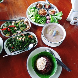 ร้านอาหารแนวorganic ตั้งอยู่ในสนามบินสุโขทัย อำเภอสวรรคโลก จุดเด่นของร้านอยู่ที่นำพืชผักมาดัดแปลงเป็นเมนูต่างๆ และผักสวนครัวที่นี่ปลูกเองเป็นส่วนใหญ่ บรรยากาศร้านก็ชิวสบาย มีทุ่งนาเขียวๆให้มองเพลินๆ - ยำปลาสลิด น้ำยำเปรี้ยวๆเผ็ดไม่มาก ปลาสลิดกรอบไม่เค็ม เมนูนี้อร่อย - หมั่นโถขาหมู เสริพมาพร้อมน้ำจิ้มเปรี้ยวและน้ำพริกเผาหวาน ตัวหมั่นโถอมน้ำมันเล็กน้อย กินมากๆแล้วเลี่ยน ขาหมูเนื้อเยอะ มันน้อย ให...อ่านต่อ