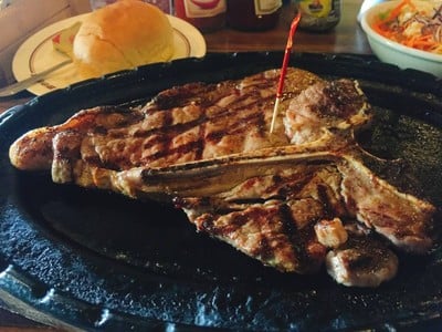 ร้าน steak ชื่อดังของปากช่อง ไม่แวะทานคงไม่ได้ครับ ร้านตกแต่งแนวคาวบอย มืดๆทึมๆ หน่อยแต่ก็ไม่ดูอึดอัด พนักงานบริการดี ตัวsteak cook ได้ดีครับ สั่งความสุกแบบไหนก็ได้แบบนั้นทั้ง ทีโบน ริบอาย แต่เด็ดคือคือตัวพรีเมี่ยม เนื้อนุ่มหวานฉ่ำๆมากๆ ตัวหมูคุโระบูตะพอร์คช๊อป ผมว่าปรุงมาสุกแข็งไปหน่อย ซีซ่าสลัดอร่อยมากๆแนะนำเลย ราคาค่อนข้างสูงตามสไตล์ร้านประเภทนี้ครับ 400+ ต่อจานดูเพิ่มเติม