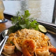 เป็นร้านอาหารไทยที่ค่อนข้างฮอตค่ะ เพราะบรรยากาศดีมาก ติดริมน้ำแถวทรงวาด นั่งกินไปชมวิวเรือแล่นผ่านไปผ่านมา ลมเย็นๆตีเข้าหน้า ไวป์ดี๊~ดี~ แล้วรสชาติดีใช้ได้เลยค่ะ นี่ขนาดมาตอนเปิดร้าน ยังแทบไม่เหลือที่นั่ง โดยเฉพาะที่นั่งติดริมน้ำ แนะนำให้โทรมาจองก่อนทุกกรณี ส่วนใหญ่ที่ร้านเด่นอาหารไทยค่ะ มีที่หากินยากหลายเมนูเลย ราคาแรงพอประมาณ รอบนี้มาสั่งหมูมะแขว่น ยำวุ้นเส้นโบราณ ต้มจืดเป็ดสาลี่ จริงๆอร่อยท...อ่านต่อ