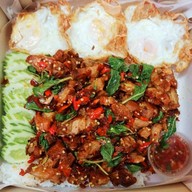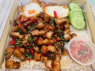 เคยสั่งมาลองหลายอย่างต้มยำ เขียวหวานเเต่ลืมถ่ายรูป ร้านนี้ให้กับน้อยกว่าข้่าว หมูราคาพุ่ง ผมเลยต้องเพิ่มtopping เพิ่มไข่เยอะๆให้มันสมดุล5555 ใช้คนละครึ่งประหยัดไปเยอะ อร่อยหลายอย่างครับ ถ้าใครไม่กินเเตงกวากับพริกน้ำปลา ตอนสั่งให้พิมบอกทางออเดอร์นะครับ เพราะร้านเขาให้มาด้วยเเต่ผมไม่ชอบดูเพิ่มเติม