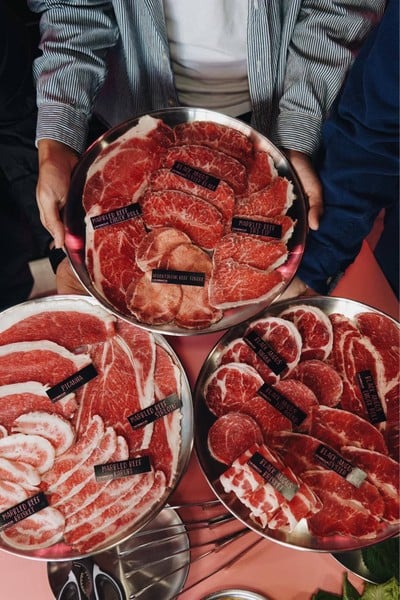 - เมนูมีให้เลือกหลายราคา 1299++ / 699++ / 399++ (เลือกตามความอยากกินหมู ไก่ เนื้อพรีเมี่ยมต่างๆ) - ทางเราสายหมูไก่ เลือกที่ราคา 399++ ได้ทั้ง หมูสามชั้น สันคอ สะโพก ใครชอบออริจินัลก็สั่งแบบไม่มีซอส แต่ใครชอบรสชาติที่มีมิติ มีทั้งซอสมานนาจา และ ซอสสไปซี่ - อย่ามองข้าม “อกไก่” เพราะนุ่มจริงนุ่มจัง สั่งมาหลายจานมากๆ นอกจากนี้ยังมีเบคอนเส้นยาว ไส้กรอก เบคอนพันเห็ดเข็มทองอีกด้วย - ทางร้านเปลี่ยนถาด...อ่านต่อ