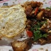 เมนูอาหารก็คือ อาหารตามสั่งทั่วๆ ไปที่คุ้นเคยกันดี แต่ไม่เน้นบรรยากาศเพราะอยู่ในตรอก ได้ลองเมนู “ข้าวราดผักกระเฉดไฟแดงหมูกรอบ+หมูสับทอด” ข้าวหุงมาได้นิ่ม ผักกระเฉดก็คัดแต่ส่วนยอดอ่อน ผัดมารสเข้มข้นจัดจ้าน ส่วนหมูกรอบที่เป็นวัตถุดิบขายดี วันที่ไปเนื้ออาจจะแข็งไปเล็กน้อย แต่ที่ชอบมาก คือ “หมูสับทอด” ชิ้นใหญ่และผิวยังมีความกรอบ เนื้อด้านในไม่แห้งกระด้าง หอมกลิ่นสามเกลอ ติดใจจนต้องสั่งกลับบ้าน ...อ่านต่อ