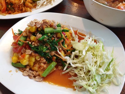 มาลองตามรีวิว ไปวันธรรมดา ร้านมีคนพอสมควร อาหารจะเป็นแนวสั่งง่ายๆ รสชาติตามมาตรฐานแต่อาหารจะติดหวานไปหน่อยแทบทุกเมนู ผัดไทยอร่อยครับ พนักงานเหมือนจะแบ่งเป็นโซน ไม่ค่อยต้อนรับ จับกลุ่มคุยกันตลิด ต้องหันไปเรียกหลายครั้งมาก ราคาค่อนข้างสูงไปหน่อย ส่วนที่จอดรถจอดได้บริเวณวัดครับดูเพิ่มเติม
