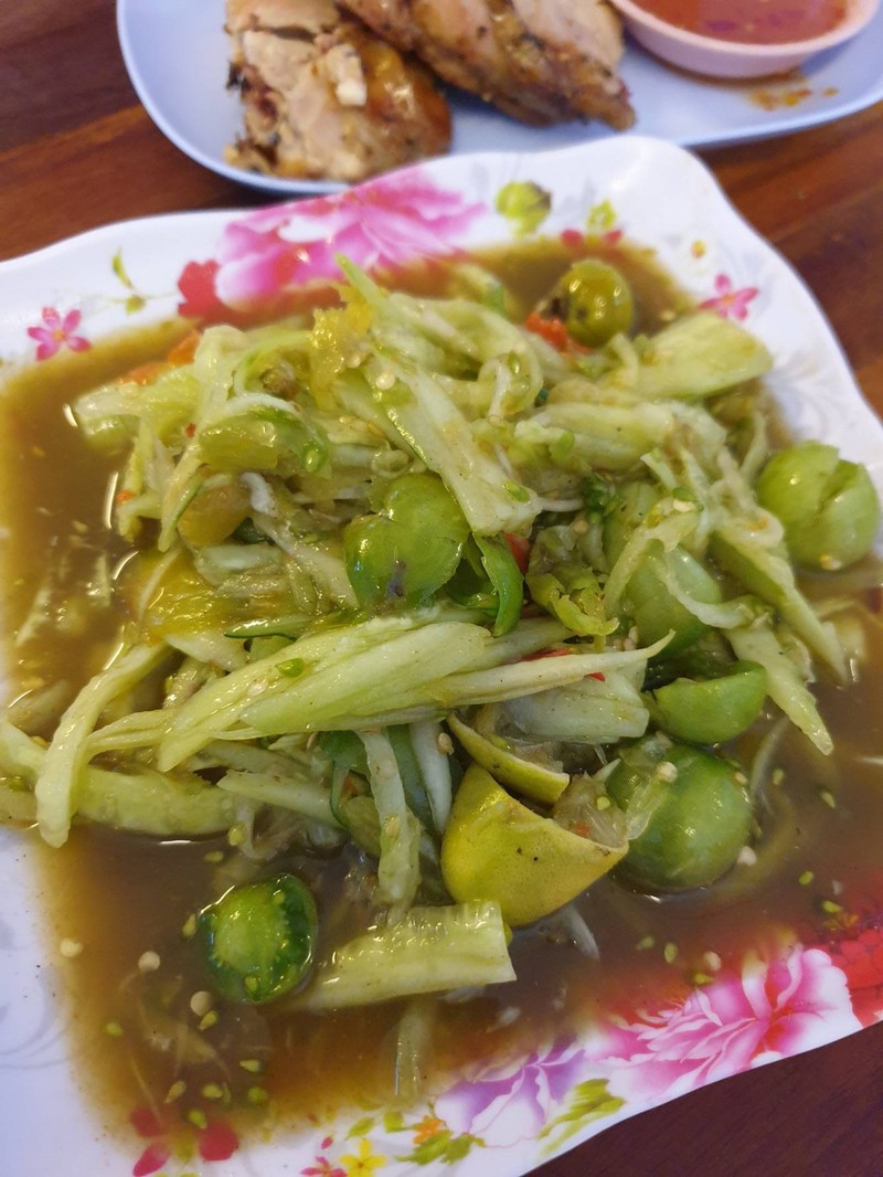 ร้านนี้ทำส้มตำอร่อย สไตล์ใส่น้ำผักสะทอน แต่อย่างอื่นธรรมดามาก ไก่ย่างเหนียว