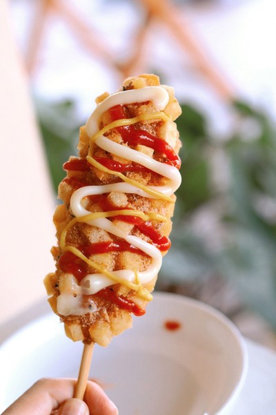 คอร์นดอกใส่กรอกไก่ ใช้เวลาในการปรุงสุข(ทอด)5-7นาที