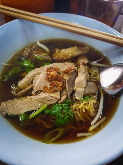 ผ่านมานครนายกเลยแวะมาลองชิมก๋วยเตี๋ยวเจ้าดัง ก๋วยเตี๋ยวเป็ดอร่อย ไม่มีกลิ่นสาบ เนื้อนุ่ม เครื่องในดี ไส้หนึบหนับ เลือดนุ่มเด้ง ภายในร้านดูเก่าแก่ขลังดี บริการดี น้ำชาชื่นใจ ก่อนกลับซื้อบ๊ะจ่างกลับไปกินที่บ้าน อร่อยเลยทีเดียว ถ้ามีโอกาสผ่านมาอีกจะแวะมากินอีกแน่นอนดูเพิ่มเติม