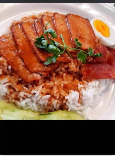 ข้าวหมูแดงมันไก่คานหาม (ข้าวมันไก่คานหาม)