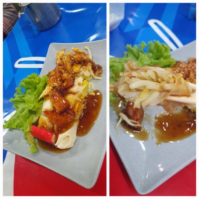 ขับรถผ่านแถวนี้หาร้านอร่อย เจอร้านนี้น่าอร่อย ขับรถมาทันทีจอดรถข้างทางแถวหน้าตลาด เดินมานิดนึง เห็นป้ายร้านชัดเจนริมถนน หน้าร้านโต๊ะตั้งขายปอเปี๊ยะเวียดนาม ก๋วยเตี๋ยวหลอด มีขายหมูกรอบหน้าร้าน ในร้านจัดโต๊ะแบบสะดวกนั่งสบายๆ เสียดายที่เมนูปอเปี๊ยะทอดไม่มี -ก๋วยจั๊บน้ำข้น ตอนสั่งบอกว่าใส่แต่หมูกรอบ รสชาติอร่อย เข้มข้นแบบไม่ต้องปรุง หมูกรอบอร่อยหนังกรอบ ชอบมากๆ -ปอเปี๊ยะ (สด) อร่อย น้ำราดอร่อยดีดูเพิ่มเติม
