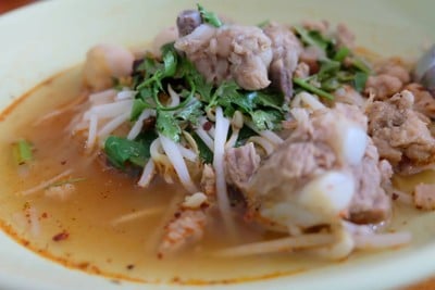 ร้านนี้เคยแต่ผ่าน เห็นชื่อแปลกๆ เลยไม่ได้ลอง วันนี้มาเเถวคลองชลประทาน หิว เลยลองดู ร้านเข้าซอยมานิดเดียวอยู่ตรงทางโค้งๆอาจจะจอดรถยากนิดนึง เลยจอดรถที่อพาร์ทเม้นท์ตรงกันข้าม แล้วเดินมา สั่งก๋วยเตี๋ยวต้มยำทะเล ,บะหมี่ต้มยำกระดูกอ่อน(ขลุกขลิกกระดูกอ่อน) ทั้ง2เมนู เข้มข้น อร่อยดี ,แหนมผัดไข่ รสชาติก็ถือว่าโอเค ราคาอาหารร้านนี้ราคาไม่แพง เริ่มที่ 35 บาทดูเพิ่มเติม
