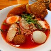 . . . เย็นตาโฟต้มยำไข่ ที่สั่งมาเลือกเป็นเส้นบะหมี่ ลวกมาเหนียวนุ่มดี มีเครื่องหลากหลาย ทั้งไข่ยางมะตูมสีสดใส ลูกชิ้น ปลาแผ่น เกี๊ยวปลา หมึกกรอบ เห็ดหูหนูขาว เต้าหู้ และเกี๊ยวกรอบ 😄