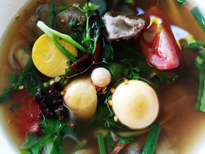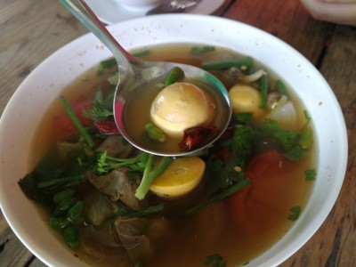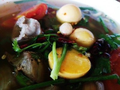 ตามมากินลาบไก่สูตรบ้านโฮ่งเจ้าเด็ดบนถนนสมโภชเจ็ดร้อยปี ตัวร้านเป็นร้านหลังคาสูงโปร่ง โต๊ะมีเยอะพอสมควร ไม่ติดแอร์ แต่ก็ไม่ร้อนนะคะ เมนูอาหารเน้นหลักเป็นลาบและอาหารเหนือนะคะ แต่ละอย่างราคาไม่แพงเลย วันนี้ลองหลายเมนูเลยเริ่มจาก - ลาบไก่คั่ว รสชาติเข้มข้นดีค่ะ แต่เสียดายเสิร์ฟใบมะกรูดทอดกะแยกมา ทำไมลืมตักใส่ ตอนแรกไม่ได้กินพร้อมกัน ขาดความอร่อยไปเยอะ - ต้มยำพวงไข่ ตามมากินที่นี่เพราะเมนูนี้เลย ชอ...อ่านต่อ