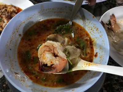 ร้านอยู่ค่อนข้างลึกนิดนึง ไปตามGPSจะพาเข้าซอยเล็กๆไป ให้จอดในที่จอดรถของบ้านหลังนึง เค้าจะเขียนไว้ว่ารับฝากรถ จอดได้ประมาณ10กว่าคัน แล้วเดินออกมานิดหน่อยจะเห็นป้ายร้าน บอกทางอยู่ค่ะ ร้านจะอยู่บนหาดเลย ชมวิวหาดไป ทานข้าวกันไป ~ อาหารที่นี่ราคาถูกค่ะ ได้เยอะ สด สั่งมา4อย่าง กิน2คน กินจนพุงจะแตก 555 ที่สั่งมามี -ต้มยำกุ้ง นำ้ต้มยำแซ่บมาก รสชาติดี เข้มข้น -ปูนึ่ง วันที่ไปกรรเชียงปูหมดพอดีค่ะ เลยได...อ่านต่อ