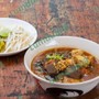 เสิร์ฟพร้อมเนื้อวัวคุณภาพดีแกงในน้ำซุปข้าวซอย "ข้าวซอย" เป็นอาหารพื้นเมืองทางภาคเหนือของไทย บางท้องที่เรียก "ก๋วยเตี๋ยวฮ่อ"