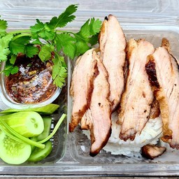 ข้าวหน้าไก่ย่างน้ำจิ้มแจ่วรสเด็ด