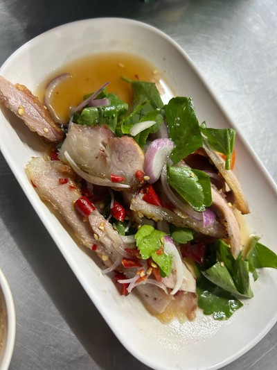 น้ำตกคอหมูย่าง ลาบเป็ด ลาบปลาดุก จิ้มจุ่ม ตับหวาน ปากเป็ดทอด