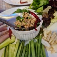 อาหารรอไม่นานก็มาเสริ์ฟค่ะ ฟรีน้ำพริกผักสดโต๊ะละ 1 ชุด เป็นน้ำพริกกะปิค่ะ - ปลาทูคลุกฝุ่น 150 บาท หอมปลาทูดีค่ะ เป็นการตำที่ผสมเครื่องแกงต่างๆ ทานคู่ผักสด คือดี - ลิ้นหมูผัดขี้เมา 140 บาท ลิ้นหมูหั่นเป็นชิ้นเล็ก มีความกรุบกรอบ ผัดกับเครื่องแกงเผ็ดร้อนแรง ทานคู่ข้าวอร่อยค่ะ - ผัดฉ่าทะเล 150 บาท มีความเผ็ดร้อนแรงเข้มข้นอร่อย หอยที่ใส่มามีความหนุบอร่อยลงตัวกับเครื่องผัดฉ่า จานนี้เราชอบค่ะ - ไข...อ่านต่อ