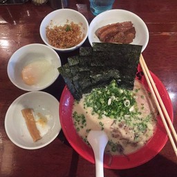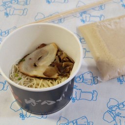 Ramen in Rich Pork Bone Broth, Served with Chashu Pork, Shredded Wood Ear Mushrooms, Seaweed, and Thai Green Onions