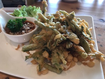 มาเที่ยวเล่นๆ เจอร้านนี้รีวิวดี ร้านสวย ตอนมาคนเยอะแต่ได้อาหารไวอยู่นะคะ แต่รสชาติไม่ประทับใจเท่าไรค่ะ เริ่มต้นด้วยสปาเกตตี้ขี้เมา กลางๆ ทั่วไปค่ะ ก๋วยเตี๋ยวคั่วไก่ มันไม่เหมือนที่เรากินปกติอะค่ะ ของที่นี่จะเป็นเส้นใหญ่ผัดกับไชโป๊วเส้นยาวๆ มาเยอะมาก มันเลยออกเค็มเยอะ ผัดมาแฉะไปหน่อย เราไม่ค่อยชอบเท่าไรค่ะ เติมซอสพริกแล้วยังไม่ได้รสซอสเลยค่ะ ยำวุ้นเส้นเป็นอีกตัวที่โอเคแต่เผ็ดไปนิดนึงค่ะ ให้เย...อ่านต่อ
