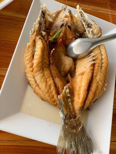 มาทานเป็นรอบที่สามครับ สำหรับทริปนี้เป็นมื้อที่สองที่มาทานกัน บรรยากาศดี อาหารอร่อยครับ รอบนี้ยังสั่งเมนูแรกเป็นเมนูเดิมทุกครั้งครับ คือ ส้มตำปูม้า มาแบบสดๆ อร่อยหวานเปรี้ยวกำลังดี สดชื่นทุกครั้งที่กินครับเมนูนี้ จานต่อมาเป็น ปลากระพงทอดน้ำปลา อันนี้เด็กๆชอบทานครับ ทอดมันปลา มาแบบชิ้นใหญ่มาก ออส่วนกรอบ มาแบบกรอบจริงๆ หมูโค อันนี้ชอบมาก อร่อยกำลังดีหวานๆเค็มๆ เด็กๆทานได้ครับ ต้มยำทะเล มาแบบเข...อ่านต่อ