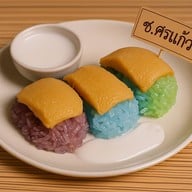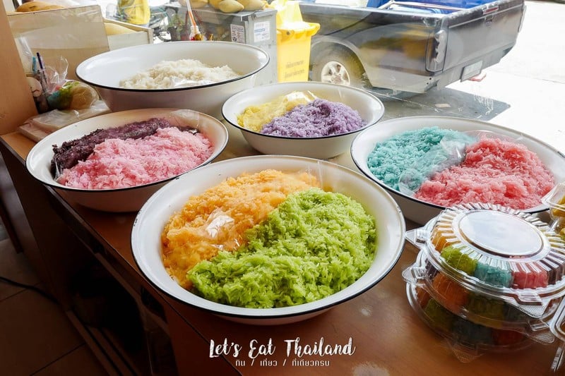ข้าวเหนียวมูน 9 สี ใช้สีจากธรรมชาติ ร้านดัง มีขายทั้งข้าวเหนียวมะม่วง ข้าวเหนียวทุเรียน ข้าวเหนียวหน้าสังขยา ข้าวเหนียวหน้ากุ้ง ข้าวเหนียวยัดไส้ขนุน ถ้าเป็นข้าวเหนียวมะม่วงใช้มะม่วงโชอนันต์ รสชาติออกหวาน มีถั่วโรยและกะทิแยกมาออกเค็ม แนะนำให้ใส่นิดเดียว อยากทานข้าวเหนียวหลายสีสั่งข้าวเหนียวมูนแฟนตาซีมีขายชุดเล็กกับชุดใหญ่ค่ะ ตัวข้าวเหนียวหุงมาไม่แฉะเกิน ออกไปทางแข็งหน่อย ทานรวมๆ กันก็พอดีดูเพิ่มเติม