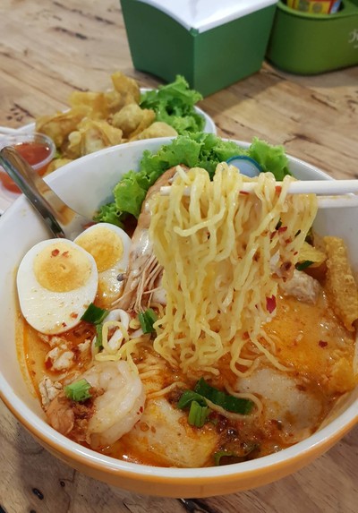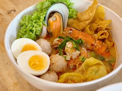 มื้อกลางวันเชียงใหม่ แนะนำสำหรับร้านก๋วยเตี๋ยวชื่อดัง จากเมนู ก๋วยเตี๋ยวหลุดโลก ที่เครื่องแน่นสมชื่อ มาเสริฟกันแบบชามโต ไม่จำเป็นต้องเพิ่ม topping ใดๆ เพราะเครื่องที่จัดมา มีทั้ง ซีฟู้ด เกี๊ยว หมูเด้ง ลูกชิ้น ไข่ น้ำซุปอาจจะน้อยไปหน่อย ปนหวานนิดๆ ตอนมาเสริฟ อรจจะรู้สึกว่าเครื่องบางส่วนไม่ค่อยร้อน ที่จอดรถมีในซอย หรือ ส่วนหนึ่งที่อยู่ในร้าน เมนูก๋วยเตี๋ยวชามธรรมดาก็มี หรือของทานเล่นก็พอสมควรอยู่ดูเพิ่มเติม