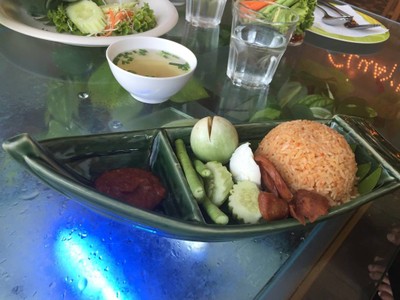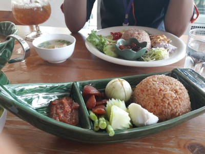 สั่งข้าวผัดร้ำพริกลงเรือ อร่อยดีค่ะ ตัวน้ำพริกเผ็ดอร่อย สุกี้แห้งมันไปนิดนึง เครื่องดื่มที่สั่งรสชาติโอเคเลยค่ะ ชาชัก ชาพีช และก็กาแฟ บรรยากาศร้านหน้านั่ง มีขนมเค้กด้วยแต่ไม่ได้สั่งมาชิมเพราะอิ่มมาก ^^ดูเพิ่มเติม
